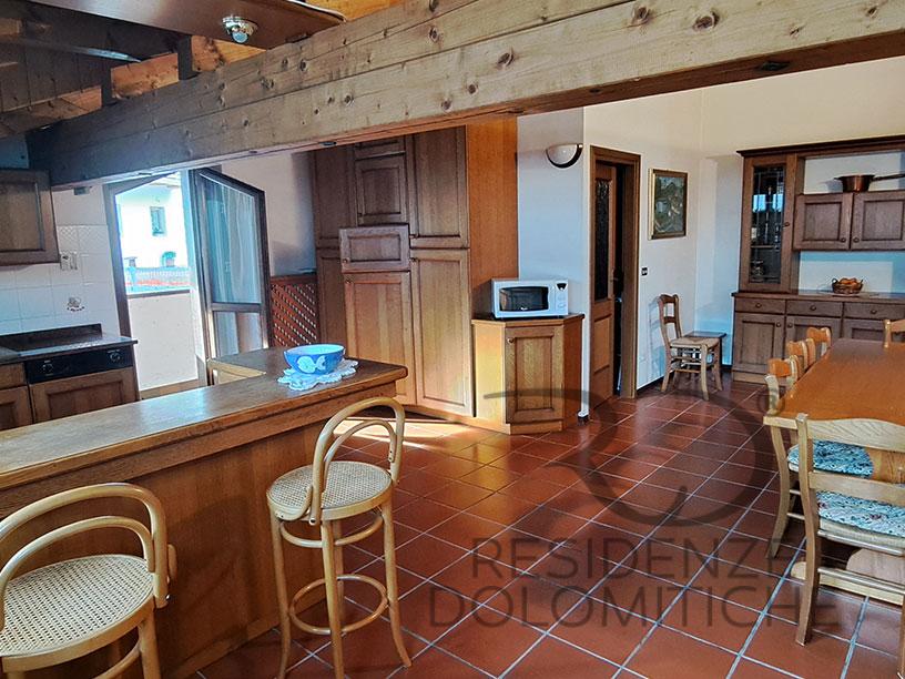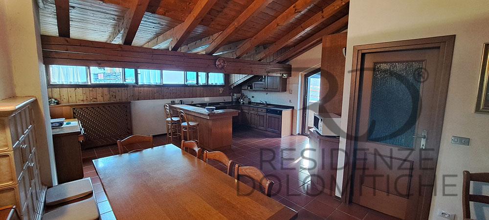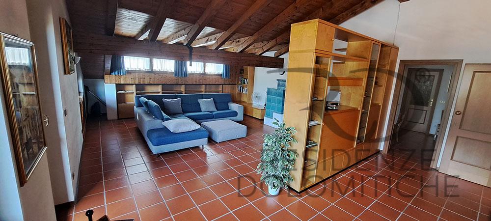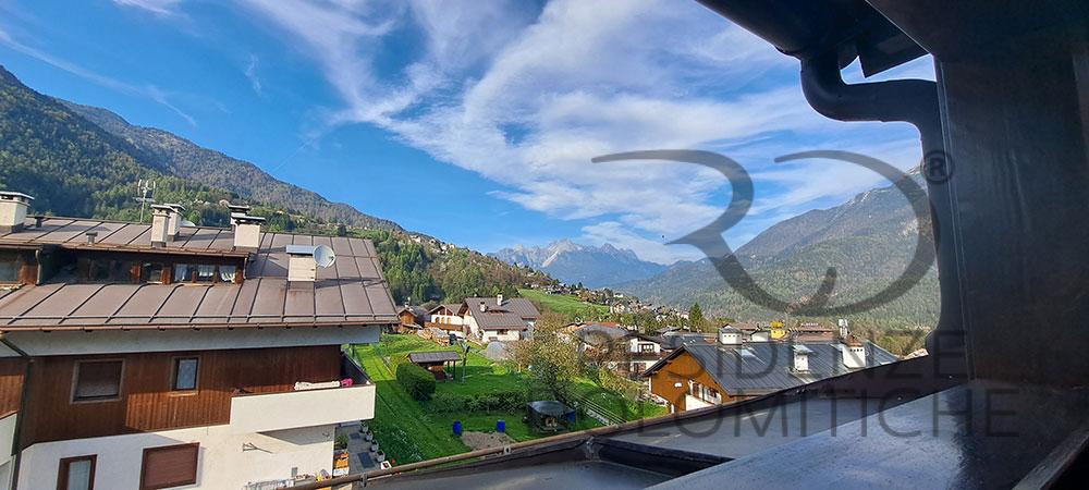Spazioso attico in Centro Cadore con vista sulle Dolomiti, quattro camere da letto, due bagni, ampia cucina completa e grande salone con tv e wifi . Due lunghi poggioli su ogni lato.