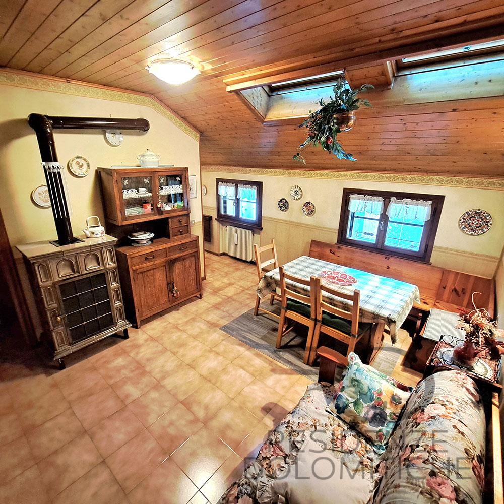 Cozy attic apartment in the center of Calalzo di Cadore, close to all the main services (small market, bakery, pastry shop, wine shop, pharmacy), located on the third floor of a recently renovated building. Parking nearby. Structure with a double bedroom, a bedroom with bunk beds. TV in one bedroom and in the living room. Central heating. Structure equipped with all services.