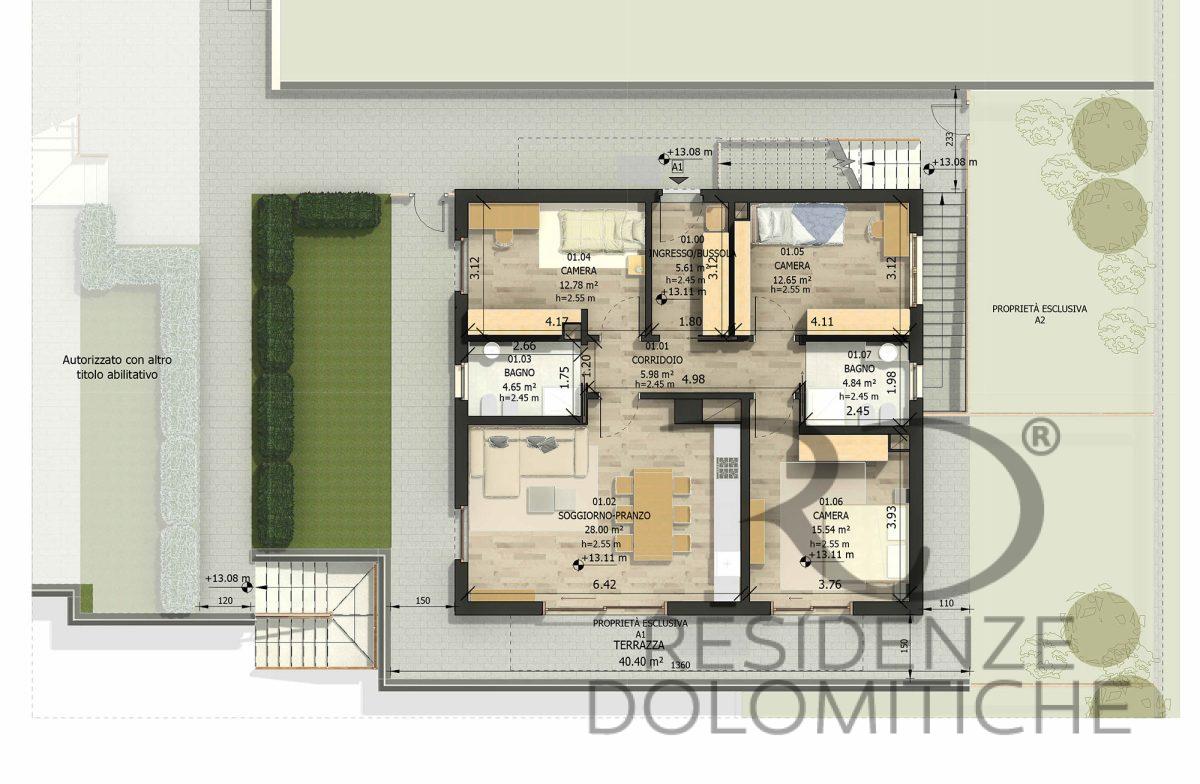 L'immobile contrassegnato dalla lettera A è una villetta bifamiliare composta da due appartamenti autonomi rispettivamente di 166 mq commerciali per il piano terra e 132 mq commerciali per il primo piano. Sviluppata su due piani più una cantina e posti auto in garage condominiale.